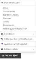 La fonction **Vision 360°** vous permet un accès simple à tout ce qui pourrait avoir un rapport avec votre client.