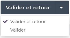 L'option "valider" valide la pièce sans la quitter. L'option "valider et retour" valide la pièce et vous repositionne sur la liste des bons de livraison.
